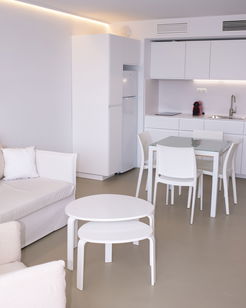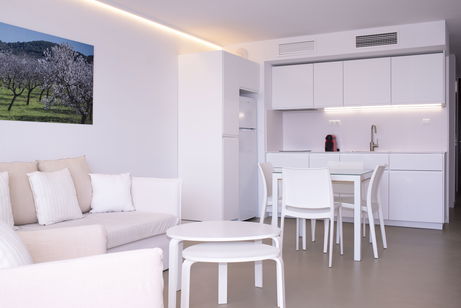 Les presentamos los recién reformados apartamentos, vista jardín superior. Dormitorio más amplio y luminoso. Cocina completamente nueva, con más espacio para el almacenaje, cafetera nespresso y nevera grande con congelador. Baño totalmente renovado.